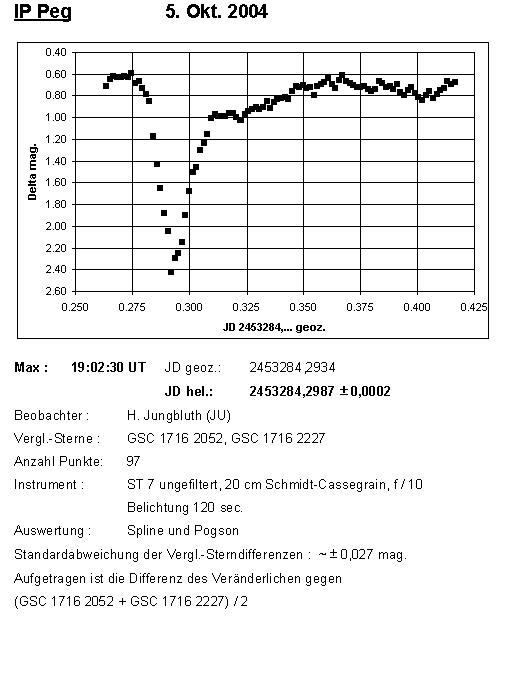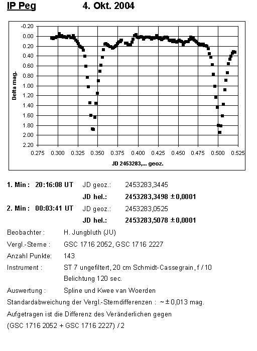 Beobachtete Bedeckungen durch Hans Jungbluth am 4. (links) und 5.10.2004 (rechts)