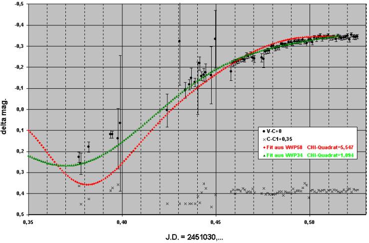 Gesamt-Lichtkurve nicht eingetragen, da deren Streuungen doch mit ca. ± 0.15 mag erheblich sind. Wir haben übrigens die Berechnung