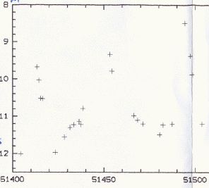 Auch AG Dra verweilt seit dem letzten Ausbruch im August 1998 relativ konstant bei knapp über 10mag.