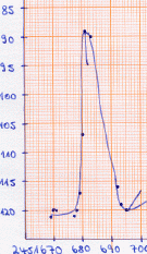 Noch höher sind die Anforderungen an Lichtkurven von Sternen wie SS Cyg oder U Gem zu stellen: Der Helligkeitsanstieg beträgt hier vier bis fünf Magnituden innerhalb von einem Tag! Eine Lichtkurve, die nicht nur einen Ausbruch feststellt, sondern auch ihren Zeitpunkt festlegt, muß mehrere Beobachtungen innerhalb weniger Stunden enthalten.